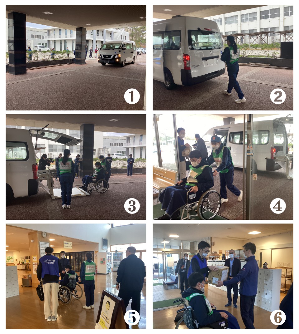 体験内容は ①車椅子体験 ②膝関節制限体験 ③視覚障害体験 の3つ。